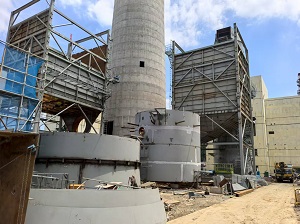 由我公司承建的无锡***热电联产扩建项目湿式脱硫除尘系统项目,正稳步推进。回顾项目7月份施工进展,我公司项目部与施工方紧密配合,顺利完成了2#脱硫塔封顶、2#湿电钢架壳体基本完成,1#湿电除尘器钢架安装完成、1#脱硫塔除雾段、喷淋段壁板焊接完成。
