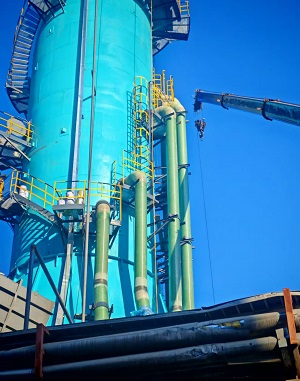 由我公司中标承建的山西***循环流化床锅炉新建湿法脱硫系统工程,目前正在进行塔内防腐施工、烟道制作安装、玻璃钢管喷淋层安装、电气照明安装等。各施工队每天上班前,由队长总结前一天的安全工作情况,提出不足及要求,安排当天的安全任务及注意事项,确保施工保质、保量、安全进行。