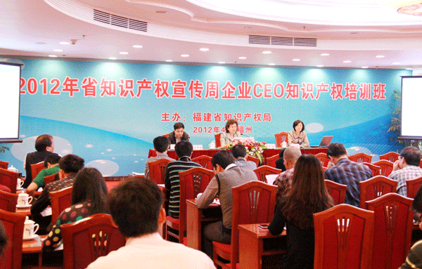423日,在全省开展知识产权宣传周活动之际,福建省知识产权局在福州举办企业CEO知识产权培训班,会期一天。省知识产权局罗旋局长出席开班式并致辞。包括我公司在内的省知识产权优势企业、知识产权试点示范企业高层管理人员,省知识产权局有关处室负责人等近100人参加了培训。