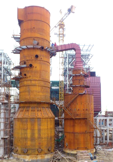 福建省东南电化股份有限公司4×130t/h循环流化床锅炉烟气脱硫项目2#氧化塔顺利封顶。目前,正进行平台楼梯制作安装、工艺管口安装。2#吸收塔塔拼接高度达16.2m,喷淋层内构件安装完成。下一步计划进行1#氧化塔进行防腐施工与吸收塔喷砂工作。