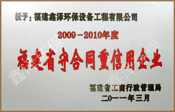 2011年3月21日,福建省工商行政管理局发布了一份《关于授予“2009—2010年度福建省守合同重信用企业”的公告》,鑫泽环保位居前列。