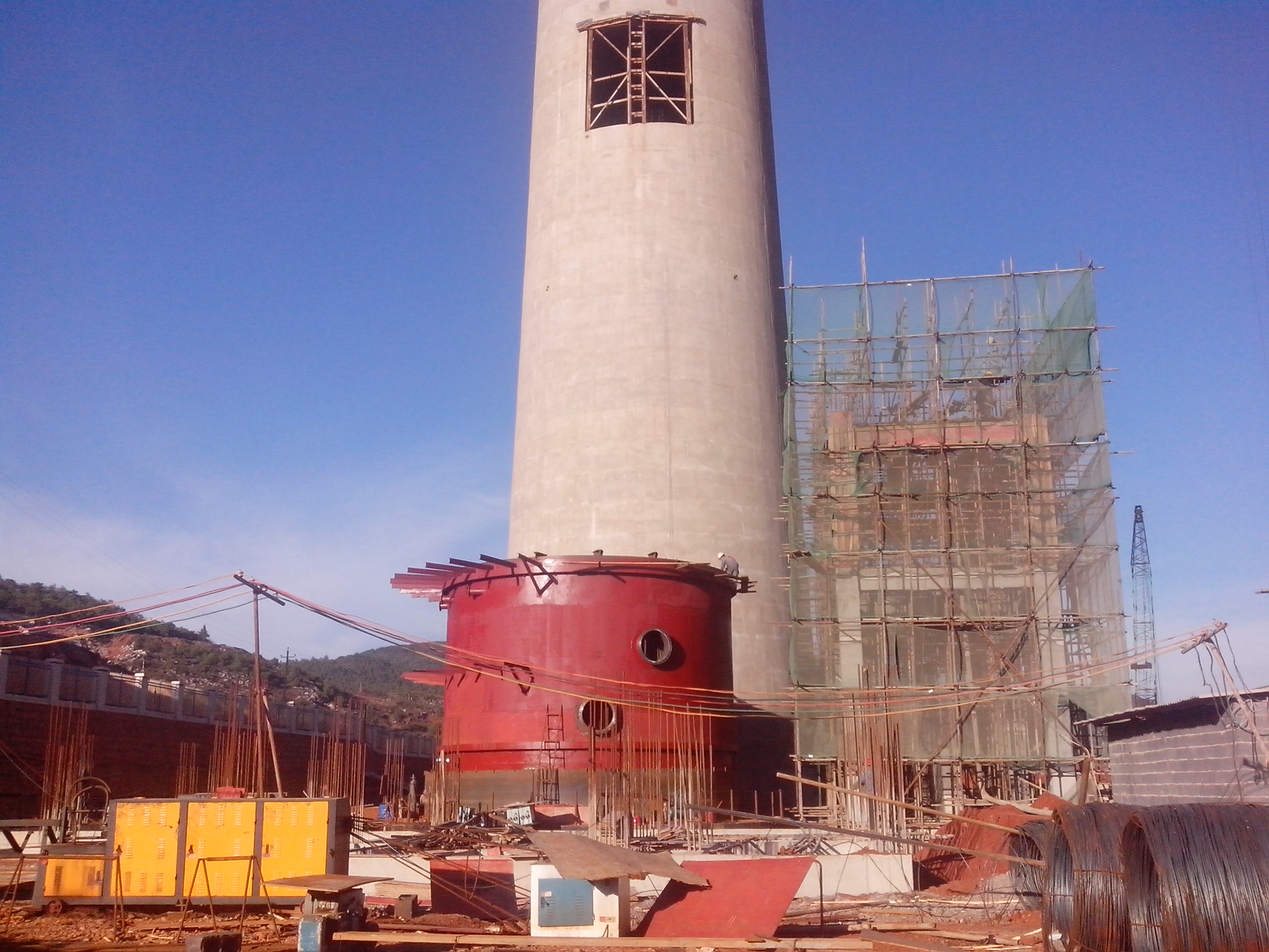 本工程投资、筹建单位为云南东源煤电股份有限公司,电厂本期建设为2×150MW用双缸双排汽凝汽式空冷汽轮发电机组,配2×480 t/h国产超高压再热循环流化床锅炉。本工程采用石灰石-石膏湿法烟气脱硫工艺,设计脱硫效率≥95%。经过我司前期的精心协调和周密组织,项目部全员众志成城,克服了现场机务、土建交叉施工等困难,保障了项目的顺利开工。在短短十几天时间内,完成了吸收塔底板以及变径段、烟筒圈板拼接等多项施工内容,同时吸收塔本体倒装设备已施工完成。