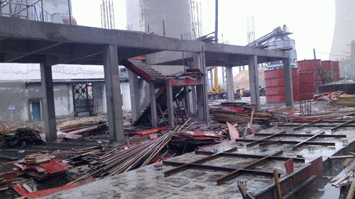 由我公司承建的海门鑫源环保热电有限公司热电厂2×15MW燃煤发电机组烟气脱硫、脱硝系统工程进展顺利。该工程于1月份完成脱硝系统调试后,便全面投入到脱硫系统土建施工和机务安装。截止目前,机务方面已基本完成了六个箱罐和灰仓的预制,一台脱硫塔直排烟囱钢板的卷制。土建方面,灰仓、四联罐基础已经完成,工艺楼二楼楼板、梁的模板已拆除,脱硫塔基础已全面展开施工。