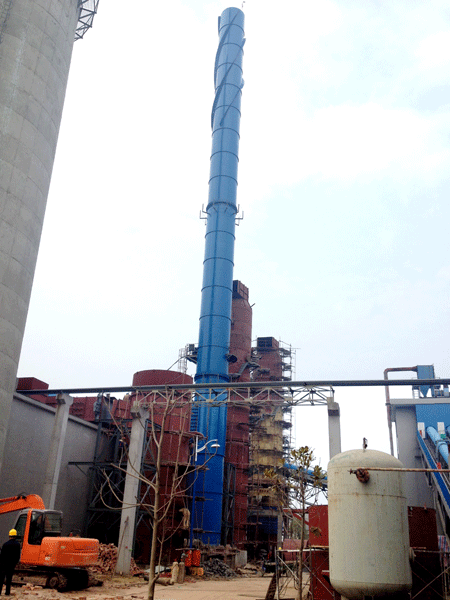 由我公司承建的兰溪协鑫环保热电有限公司热电厂15MW+6MW燃煤发电机组烟气脱硫系统工程,于2014年3月16日02:30顺利完成1#、2#、3#临时烟道与引风机出口烟道的对接,同时60m临时烟囱正常投入使用。1#、2#吸收塔于 3月17日顺利封顶,3#塔封顶计划于3月底进行。