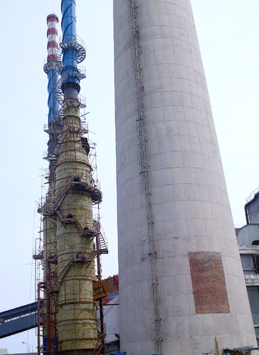 由我公司承建的海门鑫源环保热电有限公司热电厂2×15MW燃煤发电机组烟气脱硫项目,2#烟塔合一脱硫塔于2014年4月6日顺利封顶。目前本工程项目两台65m烟塔合一脱硫塔均已顺利封顶,并全面进入脱硫塔和烟囱内外防腐保温施工,标志着我公司在烟塔合一脱硫系统工程建设方面取得了又一个成功。