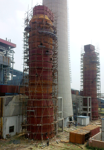 南京协鑫烟气脱硫脱硝项目1#、2#脱硫塔顺利封顶