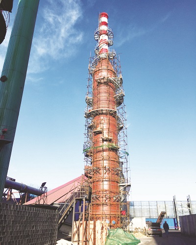 山西沁新能源集团股份有限公司焦化分公司新建5、6#备用脱硫塔工程5#备用脱硫塔于2017年11月24日顺利封顶。