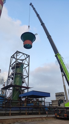 在山西沁新能源集团甲方的大力支持以及公司各位领导、各位同事、现场所有管理和施工人员的精心协调、周密组织、共同努力下,由我公司承建的山西沁新能源集团股份有限公司新创前驱体制备车间烟气净化系统改造及加装湿电工程,脱硫系统升级改造+湿电项目在准备充分、安全措施到位前提下,于10月中旬用吊车顺利将原吸收塔直排烟囱和变径段拆除完成,同时在保证安全前提下加班加点将吸收塔下部原持液段拆除也完成。这为下一步湿式电除尘安装、直排烟囱吊装、吸收塔改造以及防腐、设备安装、相关管道安装、电仪及调试运行打下良好基础。