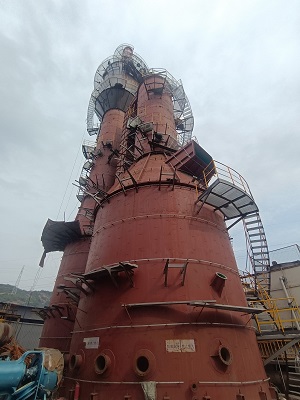 由我公司中标承建的山西沁新能源集团股份有限公司新创科技分公司石墨化炉烟气净化系统工程,现一级塔、二级塔已顺利封顶,二级塔湿电、屋脊除雾器、不锈钢托盘等安装基本完成,烟道预制焊接中;一级塔、二级塔内防腐除底板外已验收完成;电气开始安装电缆桥架。整体工程进度正常。