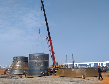 由我公司中标承建的湖南金博碳素股份有限公司石墨化炉烟气超低排放项目,于2022年9月7日正式进场施工。为保证业主工期节点要求,在土建还未动工情况下,我公司先行进场预制施工,为后续整体工期要求提供强有力的保障。目前塔体材料已进场,下料、卷板、组对、焊接等施工正有序推进。